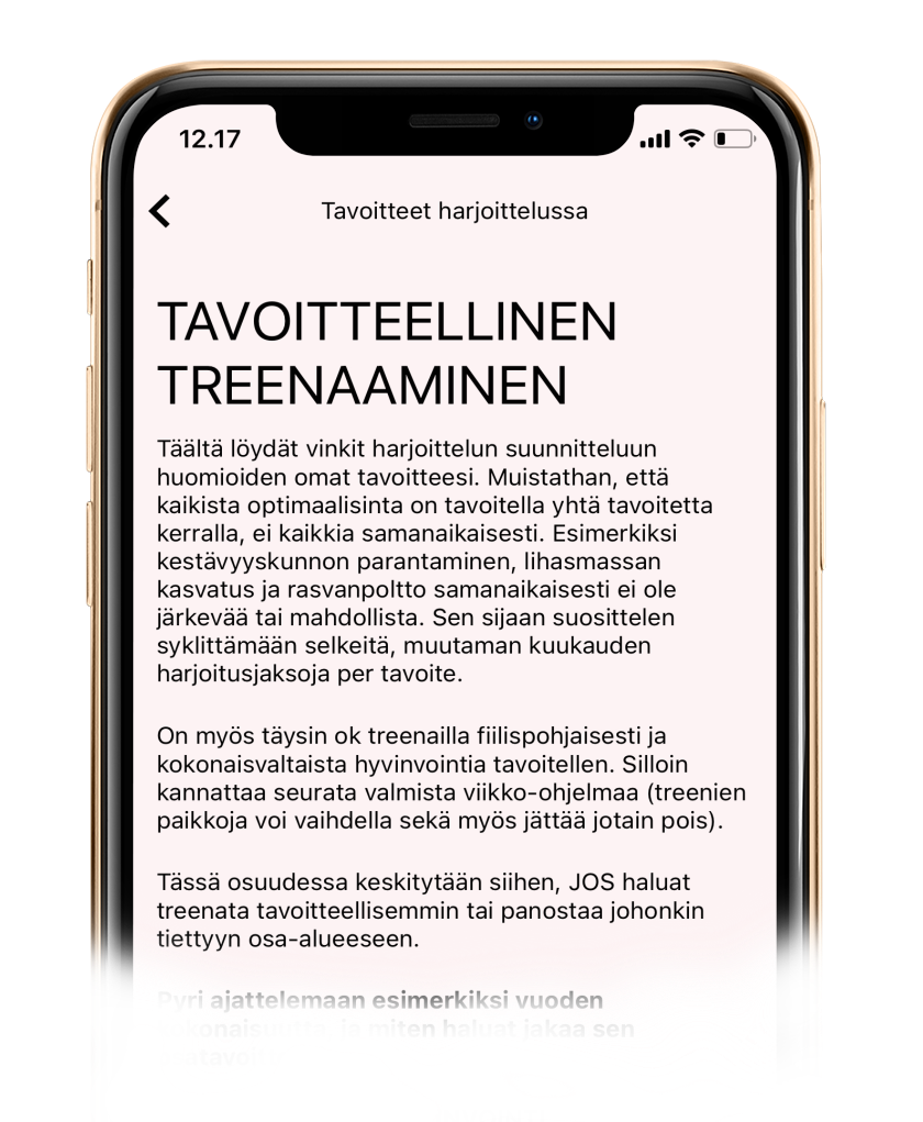 ★ Saat kuukausittain tavoitteillesi räätälöidyt kotitreeniohjelmat – jotta sinun ei tarvitse kuluttaa töiden jälkeen aikaasi treeniohjelmien kahlaamiseen netistä.
